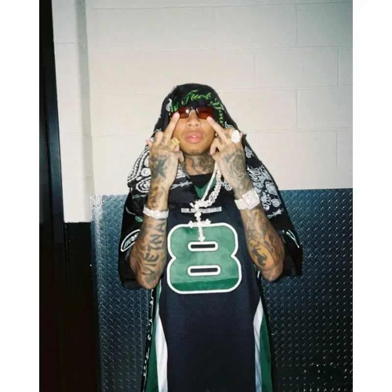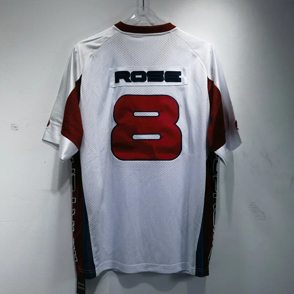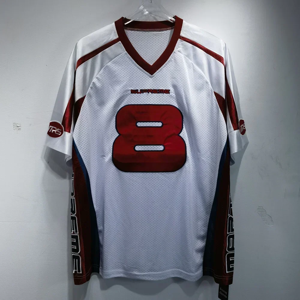 European and American Hip-hop Enthusiasts V-neck Short Sleeved T-shirt Retro Rugby Tops